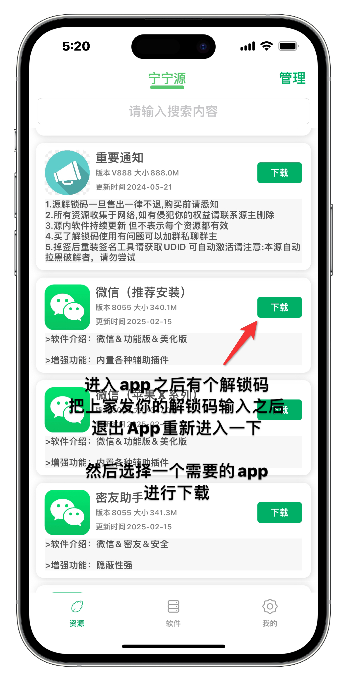 解锁软件并下载软件